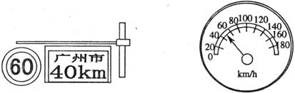 1.小红随爸爸、妈妈旅游回来,在广佛公路的一个十字路口,看到如下左图所示的标志牌。小红看到汽车上的“迈表”--速度计的示数如下右图所示。如果汽车保持这个速度还要多少时间才能到达市区?