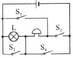 20.如下图所示,电源电压为6V,小灯泡的规格是“6V 3W”,小电铃的规格是“6V 6W”.若选择性地连接电路,使小灯泡两端的电压恰为4V,则应该闭合的开关是________ ;若只闭合S1、S4,干路中的电流为________A.