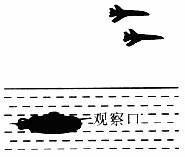 25.图中的两架敌机,一架是实际飞机,一架是从潜水艇上观察到的该飞机的像,请作出光路图并确定哪架是实际飞机。