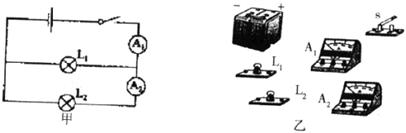 2.在下图甲中,闭合开关后,通过灯泡L1的电流为0.5A,通过灯泡L2的电流为0.4A.