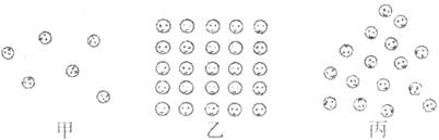 5.下图中三幅图是形象地描述固体分子、液体分子和气体分子排列情况,甲、乙、丙三种情况分别对应的是