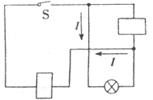19.如下图所示,开关S闭合后电流方向如图中箭头所示,请在图中方框内填出电池和电灯的符号。