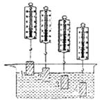为了验证上述猜想,李明做了如图所示的实验:他在弹簧测力计下端挂一个铁块,依次把它缓缓地浸人水中不同位置,在这一实验中: