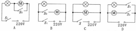 13.一般家庭的卫生间都要安装照明灯和换气扇,使用时,有时需要各自独立工作,有时需要它们同时工作,在如图所示的电路中,你认为符合上述要求的是