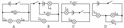 5.如所示的电路中,要想测出L2两端的电压,连接正确的是: