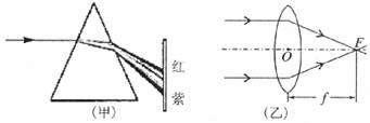 1.(3分)如图所示,冬冬在探究光的色散现象时,看到白光经三棱镜后,光屏上自上而下出现了红、橙、黄、绿、蓝、靛、紫的色带,冬冬对产生的原因进行了思考。受此启发,在澳4量凸透镜的焦距时,冬冬想:如果分别用红光和紫光平行于同一个凸透镜的主光轴射人,红光、紫光对凸透镜的焦距是否不同呢?请写出你的推断:__________色光对凸透镜的焦距大,你推断的理由是:______________________。