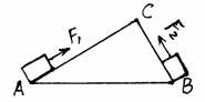 11.如图所示,AC>BC,沿斜面AC和BC分别将同一重物从底部匀速推至顶端,所用推力分别为F1和F2,所做的功分别为W1和W2,不考虑摩擦,则: