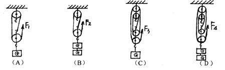 16.用相同质量的滑轮,装配成以下滑轮组匀速地提起重物,不计轴心处摩擦且每个重物质量相同,如图所示,比较四个滑轮组,机械效率最高的是: