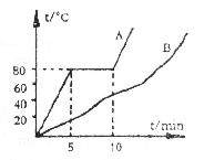 12.下图是A、B两种物质熔化时的温度一时间图象,其中________物质是晶体.它的熔点是--0C.在第8min时,这种晶体处于______________状态(选填“固态”、“液态”或“固液并存”)