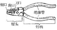 17.如下图所示的钢丝钳是人们日常生活中经常使用的工具,在构造上涉及到的物理知识很多,例如:钳把上套有橡胶绝缘管,能够防止工人在检修电路时,发生触电现象,请你再举例写出两个本学期所学的知识
