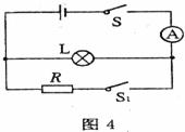 10.如图4所示,电源电压恒定,小灯泡L标有“3V 0.6W”字样,R为定值电阻。闭合开关S,断开S1,小灯泡正常发光;若再闭合开关S1,发现电流表示数变化了0.3A,则R的阻值为______