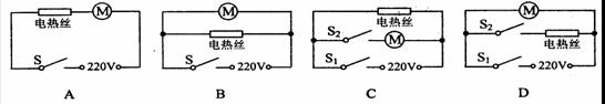 15.家用电吹风由电动机和电热丝等组成,为了保证电吹风的安全使用,要求:电动机不工作时,电热丝不能发热; 电热丝不发热时,电动机仍能工作。下列电路中符合要求的是
