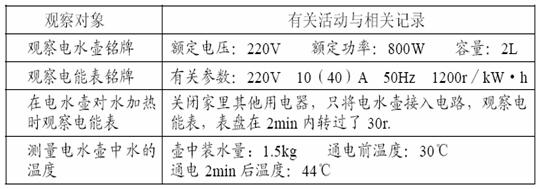 25.(9分)家用电器的综合实践活动中,小明与同学合作,在爸爸的协助下,以家里的电水壶为观察、研究对象,记录了如下表中的有关数据。