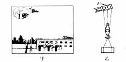 10.如图所示,升国旗用的旗杆顶上安装滑轮(甲图)是为了 ,而塔吊中使用滑轮组(乙图)主要是为了 .乙图中用104N的拉力F将重为1.8X104N的重物匀速竖直提升10m用了20s,则滑轮组的机械效率是 ,拉力F的功率是 W.