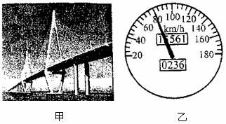10.如图甲是世界上最长的跨海大桥--我国杭州湾跨海大桥的一部分。2008年5月1日大桥正式通车,该桥全长36km,某车刚行驶到桥面时,车内显示速度的表盘示数如图乙所示,那么该车此时的运动速度 m/s,车辆匀速通过整个大桥需 h。
