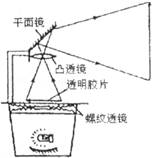 12.投影仪也是利用凸透镜来成像的,如下图所示,投影仪上有一个相当于凸透镜的镜头,投影片上的图案通过这个凸透镜形成一个_________(选填“放大”、“等大”、“缩小”)的像。在投影仪上的平面镜的作用是_____________。如果要得到较小的清晰的像,应使投影仪________(填“远离”或“靠近”)屏幕,并把透镜向_______(填“上”或“下”)移动。