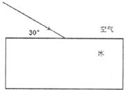17.(2分)天气寒冷,湖面结冰。一束光与水平的冰面成30°角射在冰面上,如下图所示,请画出反射光线并标出反射角的大小,并大体画出这束光进入冰中的径迹。
