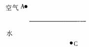 25.如图所示,小明站在游泳池边A 处,看到路灯B在池水中的像与他看到的池中一条鱼在C 点重合,用光学作图法确定路灯B 的位置和鱼的大致位置。
