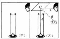 (2)当耳朵水平移动离开玻璃圆筒口一段距离后,如图(甲)所示位置,恰好听不见表声.