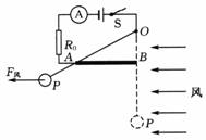 31.(8分)小明同学设计的“风力测试仪”在校科技节上备受师生们的青睐,“风力测试仪”的原理如图所示。电源电压6V,R0为保护电阻,AB为长20cm、阻值为50Ω的均匀电阻丝。OP为质量、电阻均不计的金属细杆,下端连接一个重为2N的球P。闭合开关S,无风时,OP下垂并与电阻丝的B端接触;有风时,球P受风力的作用,使金属细杆OP绕悬挂点O偏转,当偏转到电阻丝的A端时,电流表示数为0.6A。已知悬挂点O与电阻丝B端的距离为10cm,金属细杆OP始终与电阻丝AB接触良好且无摩擦,求