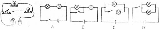 3.右下图所示四个电路中,与左下图所示实物电路图对应的是