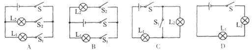 1、如图所示的四个电路图中,各开关都闭合后,灯泡L1与L2串联的是( )