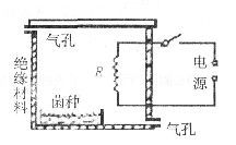 24.生物上培养菌种需要在相对稳定的温度环境下进行。下图是某校物理研究性学习小组的同学设计的恒温箱。他们将一段电热丝只接入电源电压为24V的电路中,测得其消耗的功率为18W。假设电热丝阻值不随温度变化,试着解答下列问题: