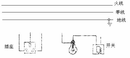 1.如图所示的插座和电灯(带开关)是组成家庭电路的常用器件,请你用笔画线代替导线将它们接入电路.