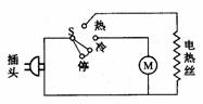 18.如图所示是电吹风的电路。当选择开关放在热的位置时,电路中的电热丝和电动机____________联,可以送热风;当选择开关放在冷的位置时,只有_____ __通电,可送冷风;当选择开关放在停的位置,电吹风机停止工作。