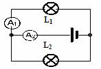 22.如图电路,电流表A1的读数为1.5A,A2的读数为2A,则通过灯L1和L2的电流分别是I1= A,I2= A。