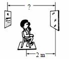 2、检查视力时,要求眼睛与视力表相距5 m。医院里常按图所示的方式检查视力,让被检查者面对平面镜而坐,身后是视力表。已知人距平面镜2 m,那么视力表离平面镜的距离应是: