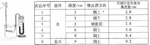 (1)比较序号为____________的三组数据可得出结论:液体的压强随深度增加而增大