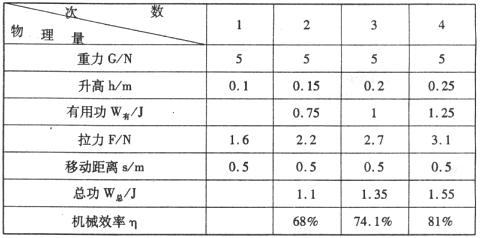 (3)分别测出拉力F,杯子移动的距离S和杯子升高的高度h;