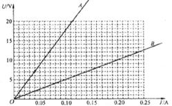17.如下图是电阻A和电阻B的U-I图线,从图上可以看出A的电阻__________B的电阻(选填“大于”、“等于”或“小于”)。若将它们都接在7.5V的电源上,则通过A、B的电流分别为__________、__________。