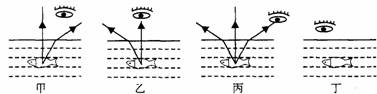 C.只有丙图能看到鱼 D.四个图都能看到鱼
