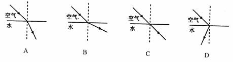 12.光线从空气斜射入水中发生折射,如图中描述折射的四幅光路图正确的是 ( )