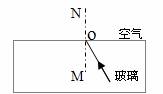 24.如图所示的是光从玻璃斜射入空气时入射光的光路情况,请在图中画出该入射光线的折射光线的大致位置。