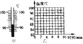 ①某次数据没有记录,当时温度计示数如图甲所示,请将漏填的数据填在表格内;