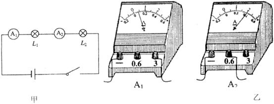 25.某同学希望通过比较电路中不同位置的电流表的读数来研究串联电路的电流规律.所接电路图如图甲所示,闭合开关后,两电流表指针偏转情况如图乙.