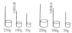 24.小明去某古镇旅游时发现,米酒是当地的一种特产。小店卖米酒和卖酱油都用竹筒状的容器来量取。但量取相同质量的米酒时所用的器具比量取酱油的要大一点,如下图所示。请你利用所学的物理知识对这种现象做出解释。你对次量具有何评价?