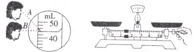 25.下面左图中使用量筒时正确的读数视线是__________(选填“A”或“B”)。如下右图所示,在调节天平横梁平衡的操作中,错误的是______________________________。