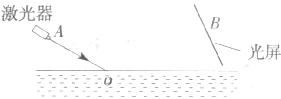 18.如下图所示,为激光液面控制仪的原理简图。由固定激光器发出的一束激光AO以60°的入射角射向液面,经液面反射后射到光屏上的B点,再通过光屏上的光电转换器将光信号变成电信号,输入控制系统用以控制液面高度。请通过作图找出B点的准确位置。如果B点下移,则液面是上升还是下降?通过作图说明。
