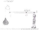24.(5分)如下图是举重运动员小宇自制的训练器械,轻杆AB长1.5m,可绕固定点O在竖直平面内自由转动,A端用细绳通过滑轮悬挂着体积为0.015m3的沙袋,其中OA=1m,在B端施加竖直向上600的作用力时,轻杆AB在水平位置平衡,试求沙子的密度。(g取