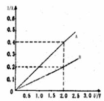 C.当在导体B的两端加上1V的电压时,通过导体B的电流为0.1A