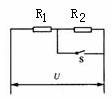 7、如图所示,R1=2R2 ,电源电压U保持不变,当开关断开时,电阻R1的功率为P1,当开关闭合时,电阻R1的功率是P1′,则P1:P1′为( )