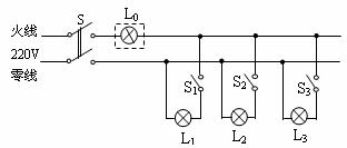 10、电工师傅常用一只标有“220V 40W”的灯泡L0(检验灯泡)取代保险丝来检查新安装的照明电路中每个支路的情况,如图所示。当只闭合S、S1时L0不亮;当只闭合S、S2时,L0和L2都呈暗红色;当只闭合S、S3时,L0正常发光。由此可以判断( )