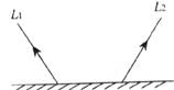 23.由同一点光源S发出的两条光线:经平面镜反射后光路如下图所示,请你分别画出这两条反射光线的入射光线,并标出S的位置。