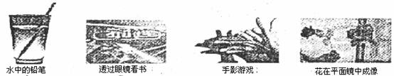 1.如下图所示,均是与光有关的四种现象,其中反映光沿直线传播的是