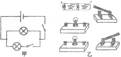 16.请你按照下图甲所示的电路,用笔画线代替导线,将图乙中的元件连成电路。