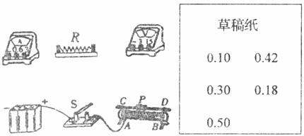 阻值的实验中,小明选定了如下图所示的器材进行实验。实验过程中,由于小明同学的疏忽,做完实验后才发现,把测量的电流值都写在草稿纸上而忘记填入表格中。